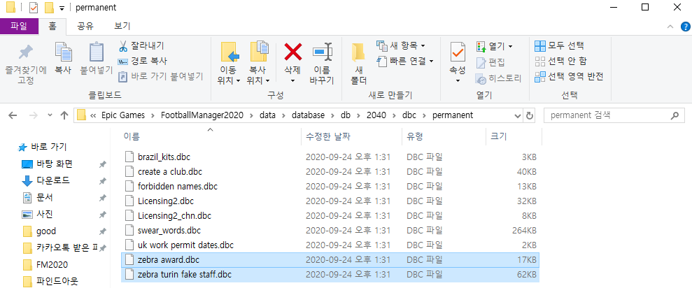 Epic Games - FootballManager2020 - data - database - db - 2040 - inc - all로 들어가셔서