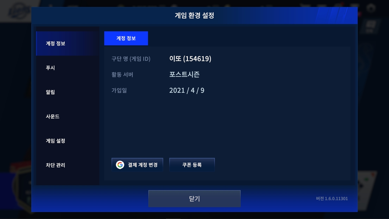 오른쪽 상단에 있는 톱니바퀴 모양의 게임 환경 설정 버튼을 눌러주세요.