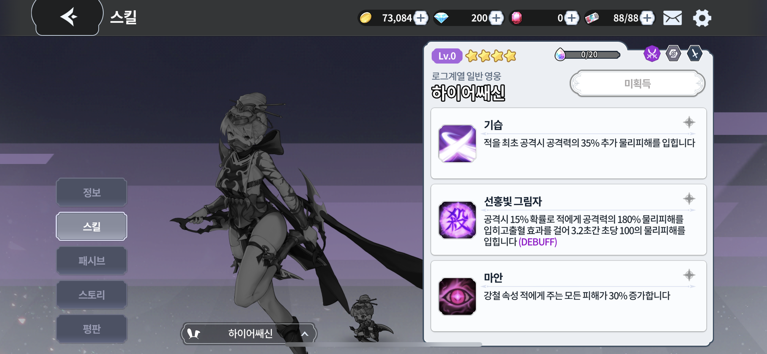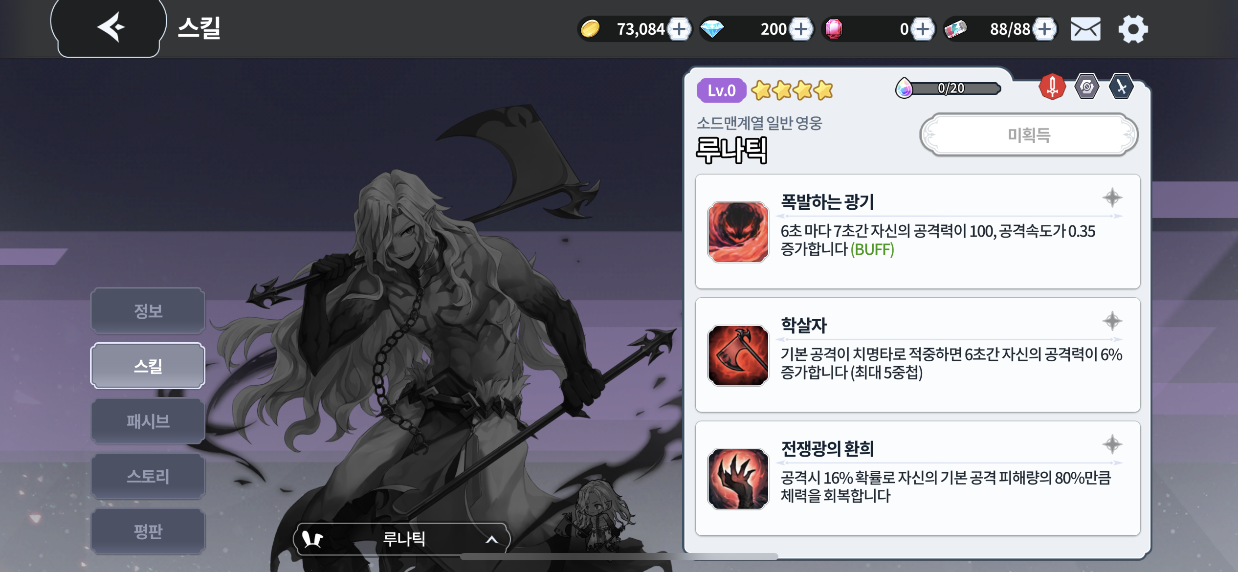 루나틱(A) : 흡혈 딜러라고 보시면 되는 영웅입니다.