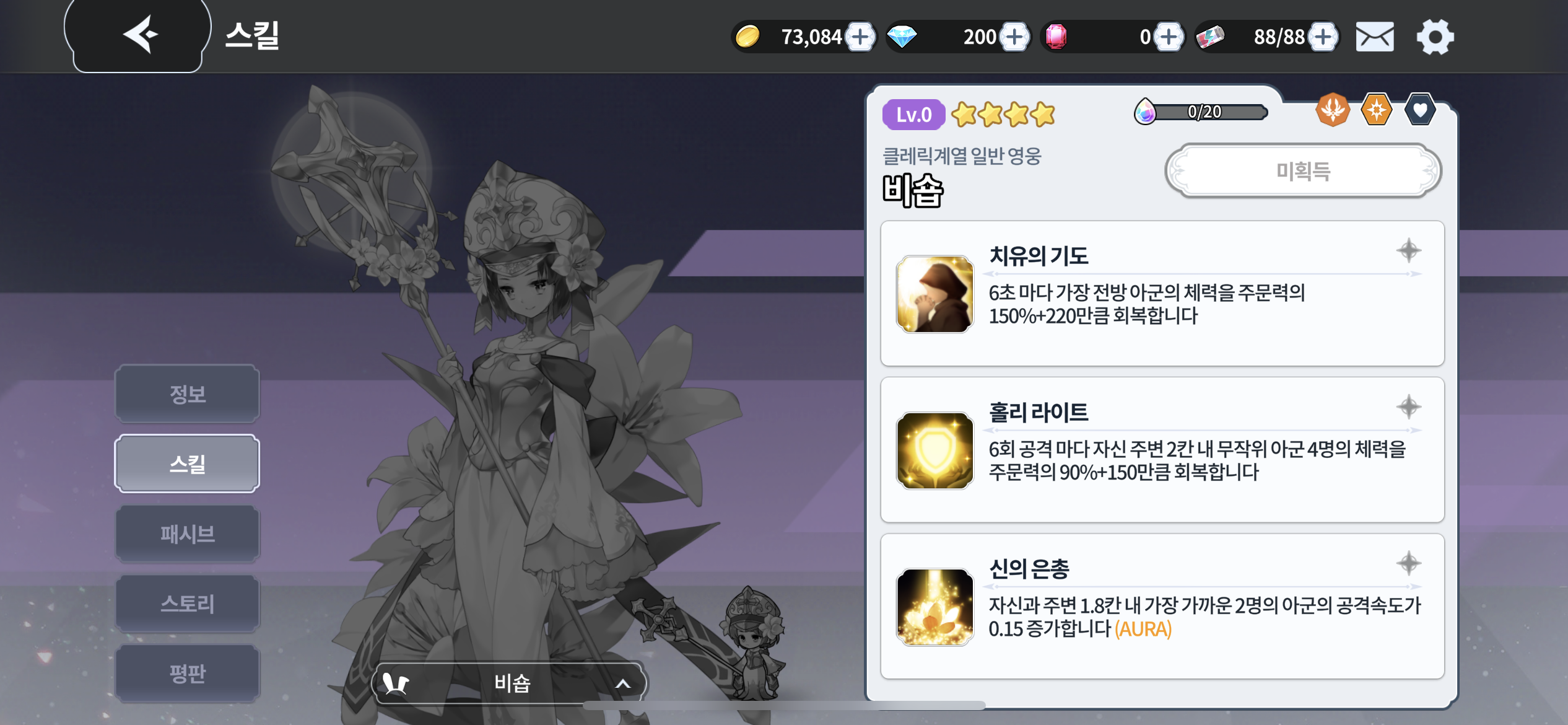 필드에 배치된 클레릭 계열의 영웅이 2/4/6명 배치 되있을 경우에 클레릭 계열의 영웅은 주거나 받는 회복량이 40/50/90%로 증가합니다.