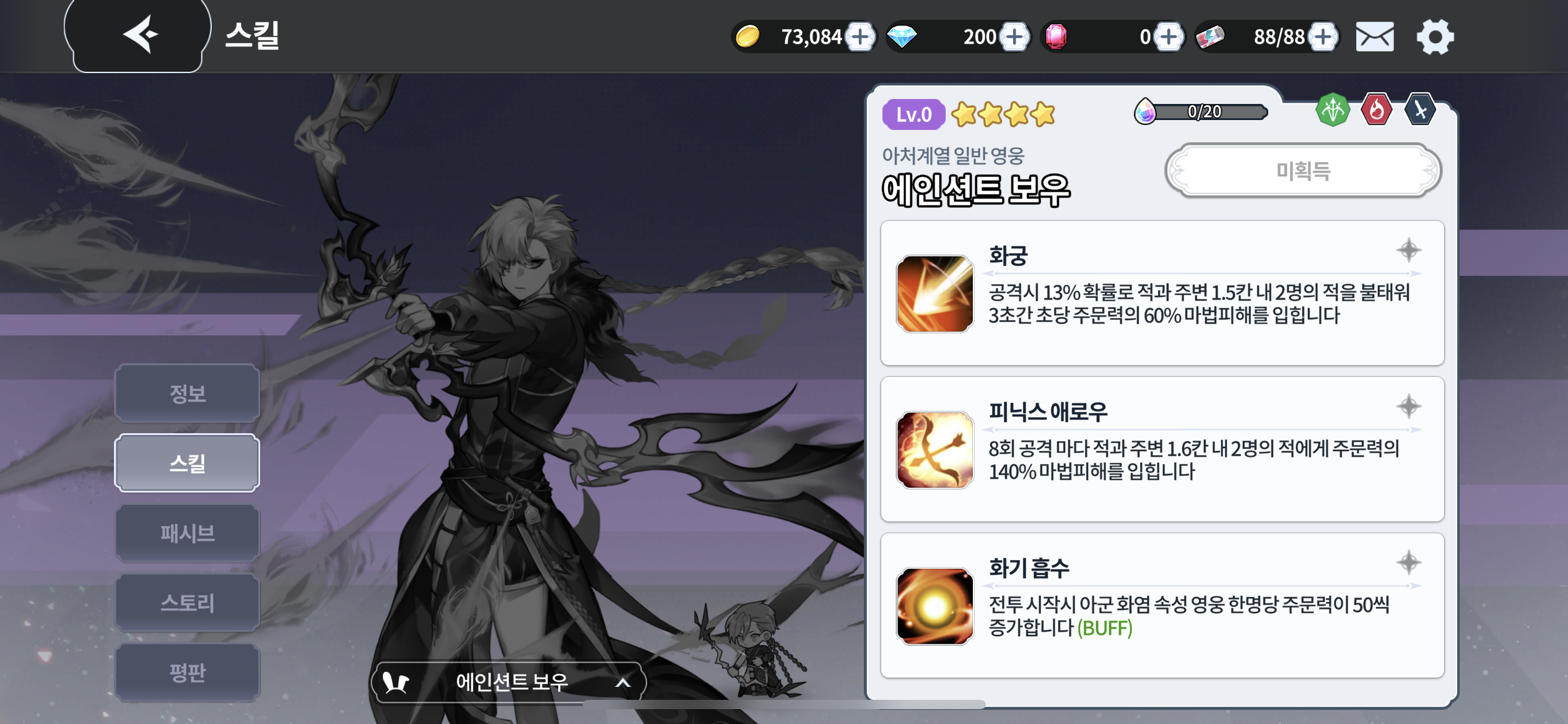 필드에 배치된 아처 계열의 영웅이 2/4/6명 배치되어있을 경우에 아처 계열 영웅의 물리 공격력이 30/40/80%로 증가합니다.