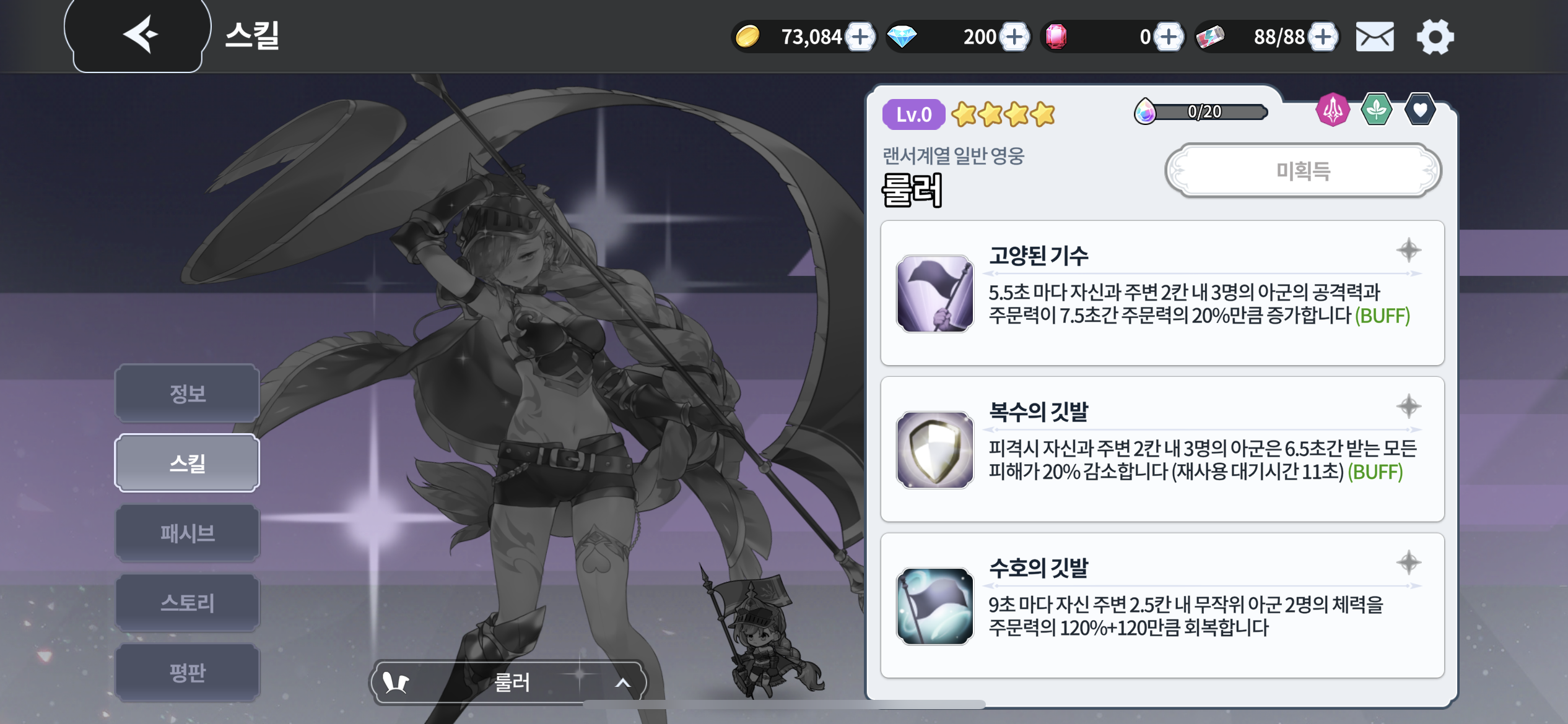 필드에 배치된 랜서 계열의 영웅이 2/4/6명 배치되어있을 경우에 랜서 계열의 영웅은 아군이 처치당하면 35/50/80%의 확률로 불사 효과를 얻게 됩니다.