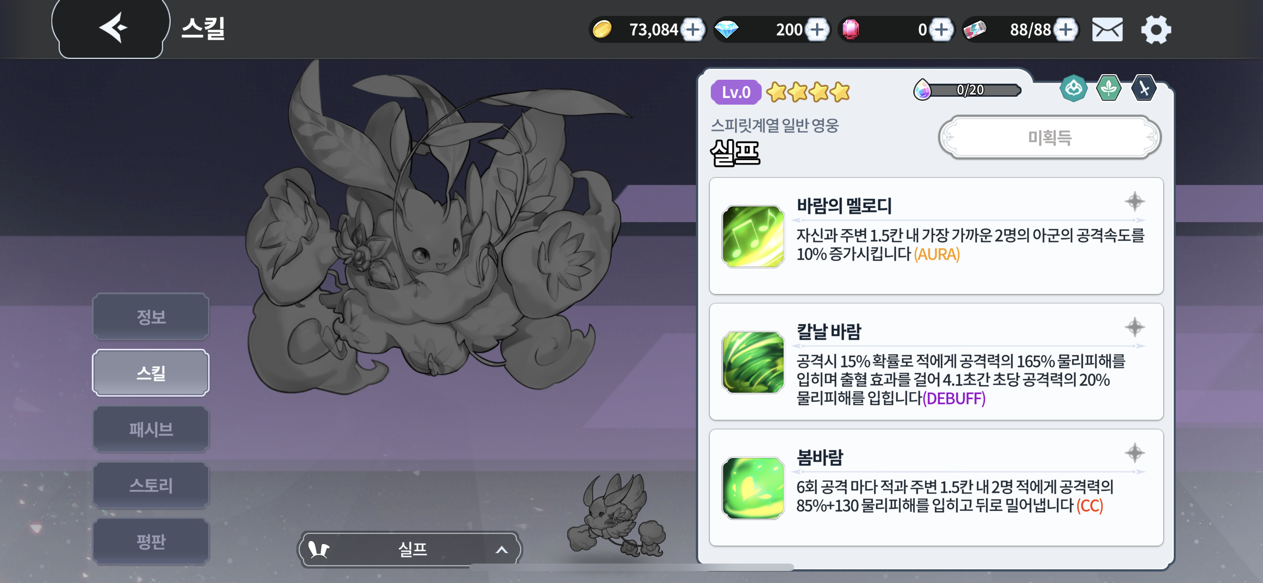 필드에 배치된 스피릿 계열의 영웅이 2/4명이 배치 되있을 경우에 스피릿 계열 영웅의 공격속도가 40% 증가합니다.
