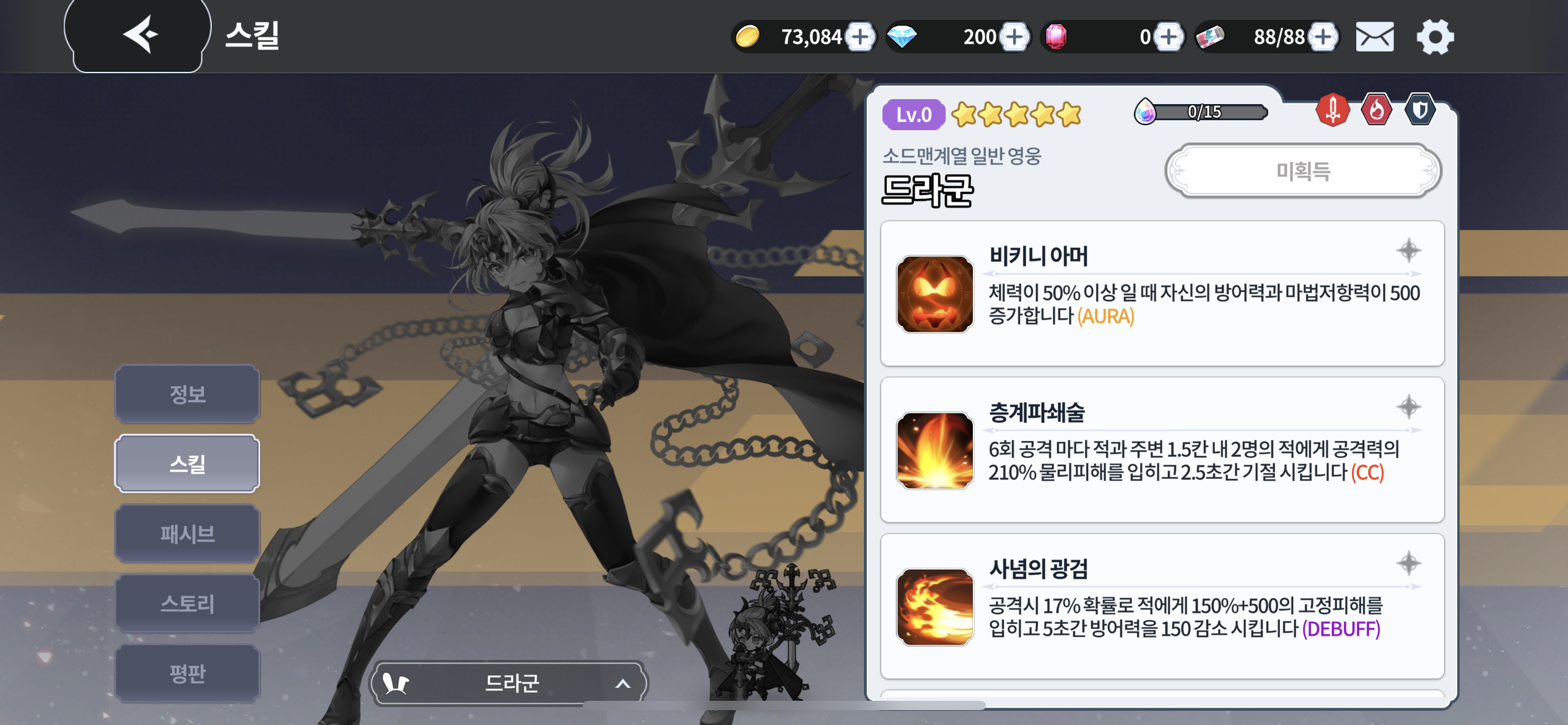 데스나이트(A) : 탱킹 능력이 매우 뛰어나고, CC기도 보유한 좋은 탱커입니다.