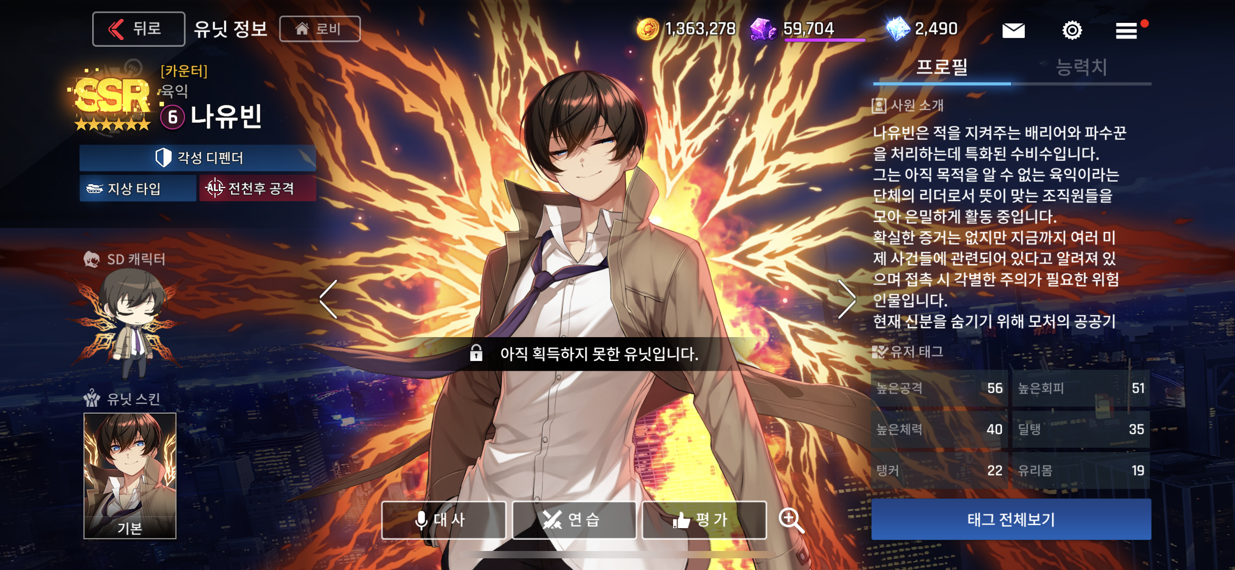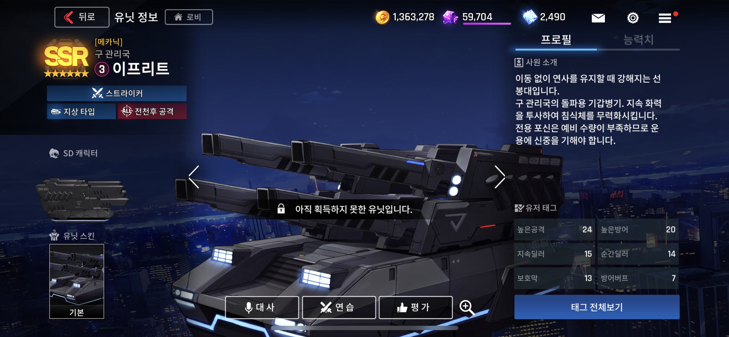 아이리 : 적당히 육성해두시면 대공5에서도 꽤나 유용하게 쓰이는 든든한 탱커입니다.
