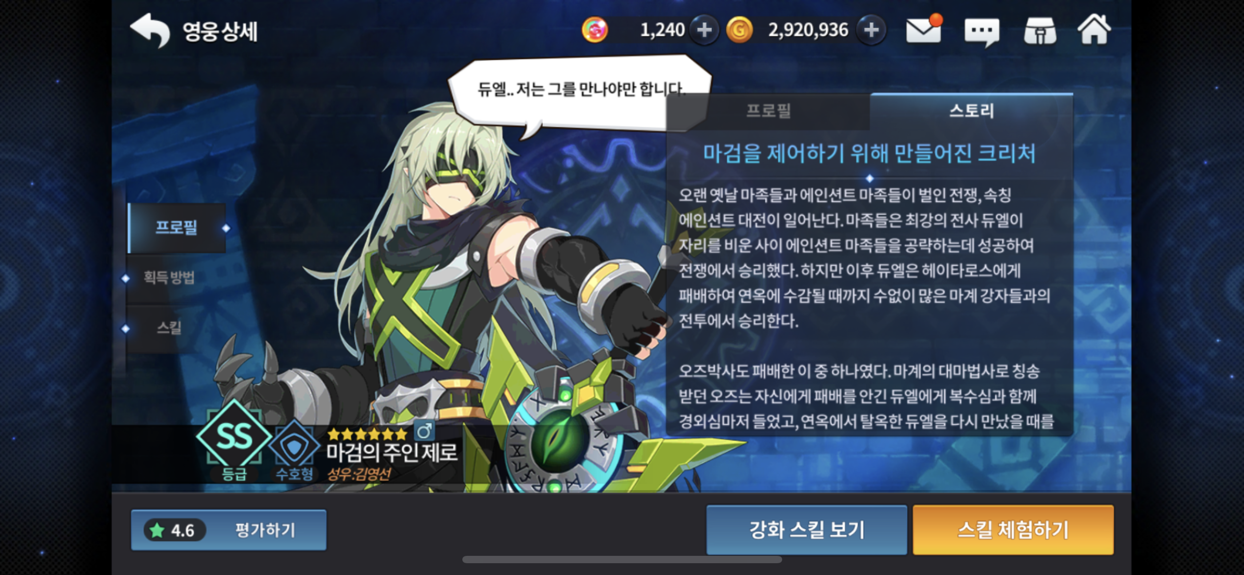 뉴비 입장에서는 처음부터 제로를 메인으로 성장시키기보다는 다른 탱커형 캐릭터를 세워두고 함께 성장시키는 것을 추천드립니다.