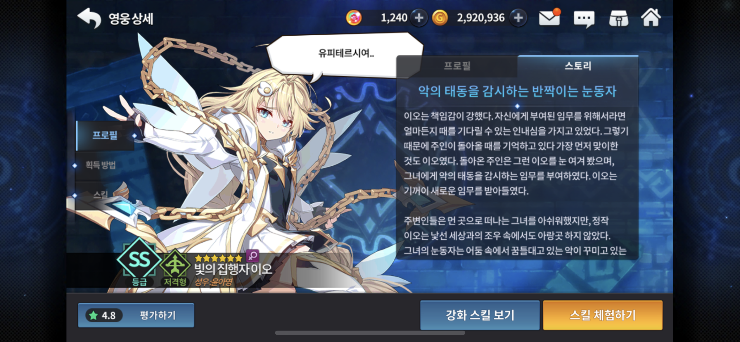 이오와 같이 SS영웅 선택권으로는 뽑을 수 없지만 뉴비분들은 꼭 갖춰두시는 것을 추천드립니다.