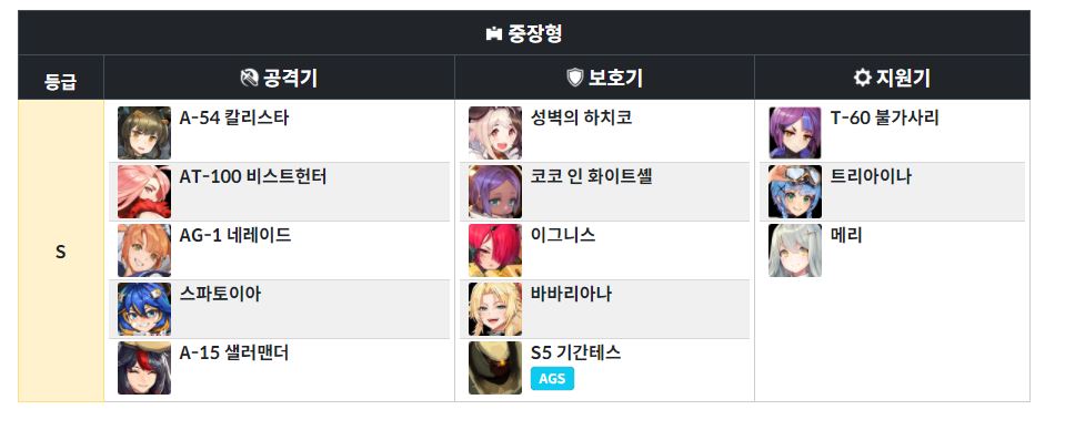 어느정도 S~SS급을 포지션에 맞게 정리해놓은 등급표,