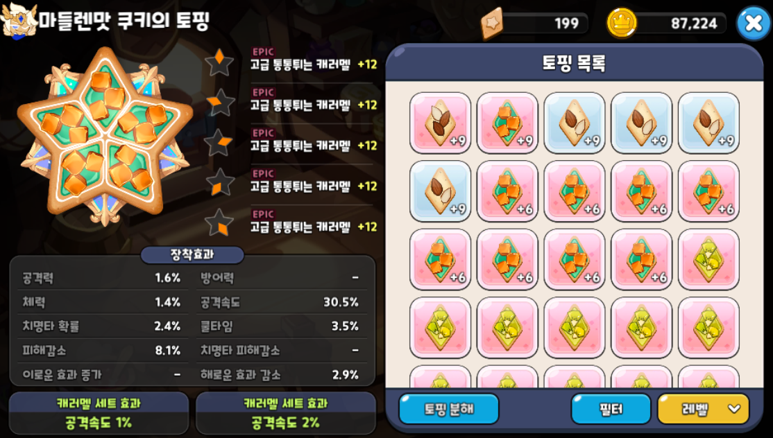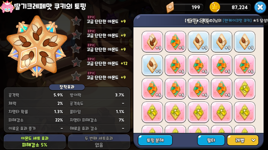 아몬드맛 쿠키 - 쿨타임 감소 토핑 or 피해감소 토핑