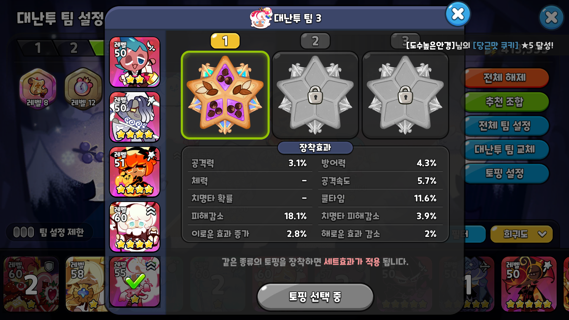 쿠키런 킹덤 대난투 조합과 토핑 및 공략
