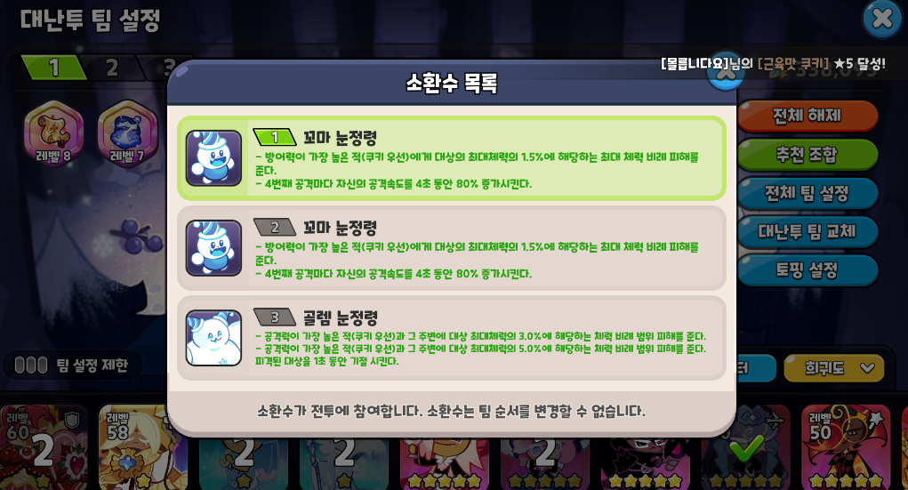 문제는 후공권에 매우 취약하며 눈설탕맛 쿠키를 육성해놓지 않았다면,