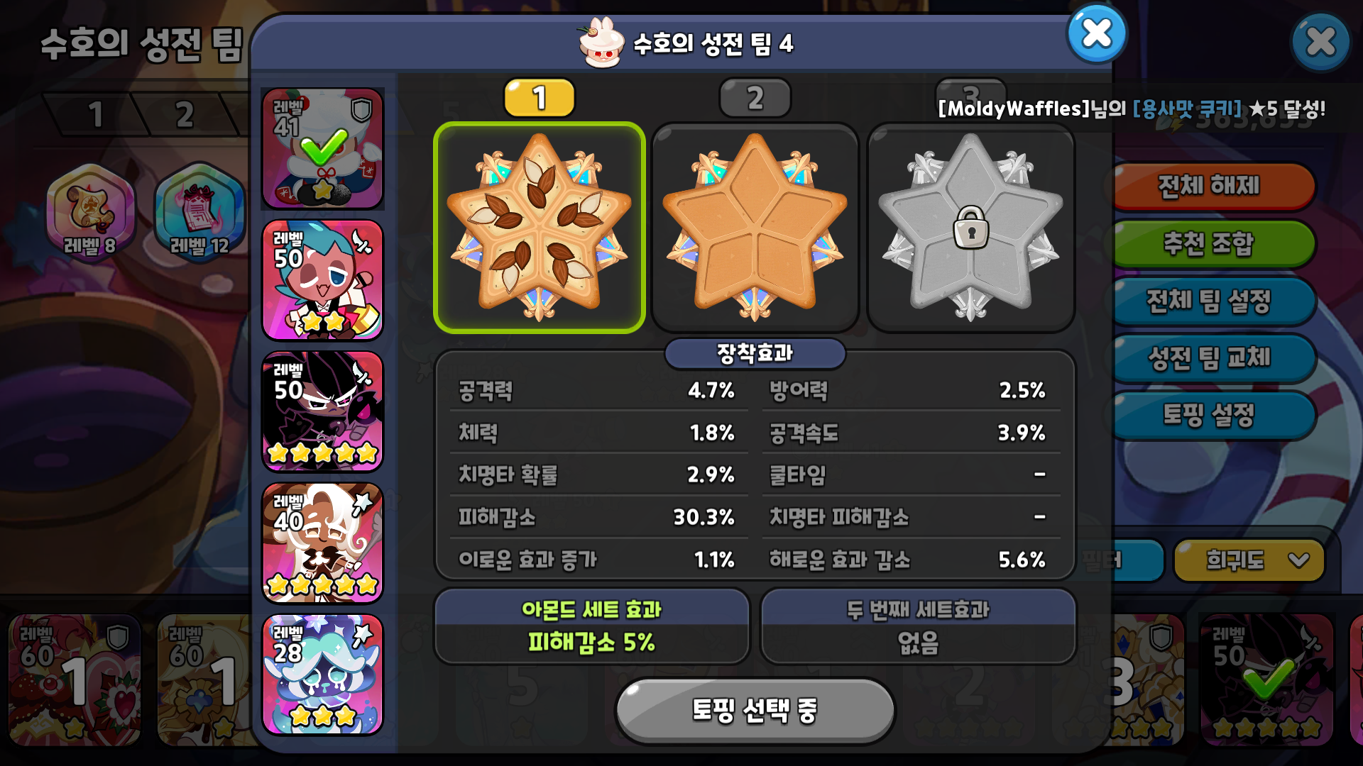 달토끼 쿠키 : 아몬드 토핑 5개 / 부옵션 피해감소 높을수록 좋음